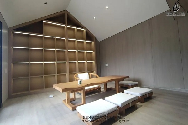 客廳區域:這是主人與家人常一起待的地方,所以根據業主的生活習慣以及喜好,設計了部分燈光場景,回家模式、明亮模式、觀影模式等
